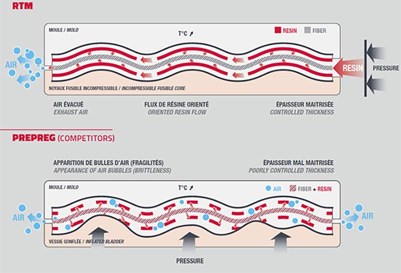 Resin Transfer Moulding is the best way to minimize defects in the frame structure. By laying up dry fibers and then injecting resin at high pressure between rigid external AND internal molds, air pockets and voids are eliminated. Unlike the industry-standard prepreg layup and air bag moulding, RTM quality is uniform and consistent yielding a beautiful near-finished product. While the RTM process is ubiquitous in aerospace and high-end automotive applications, it’s almost unheard of in cycling and your TIME is unique.